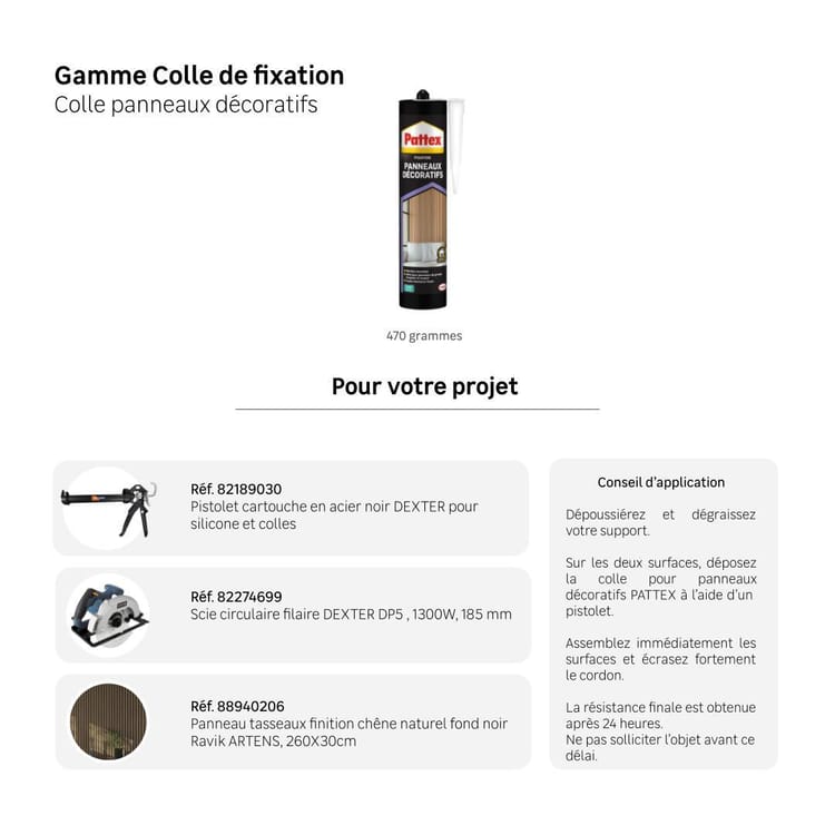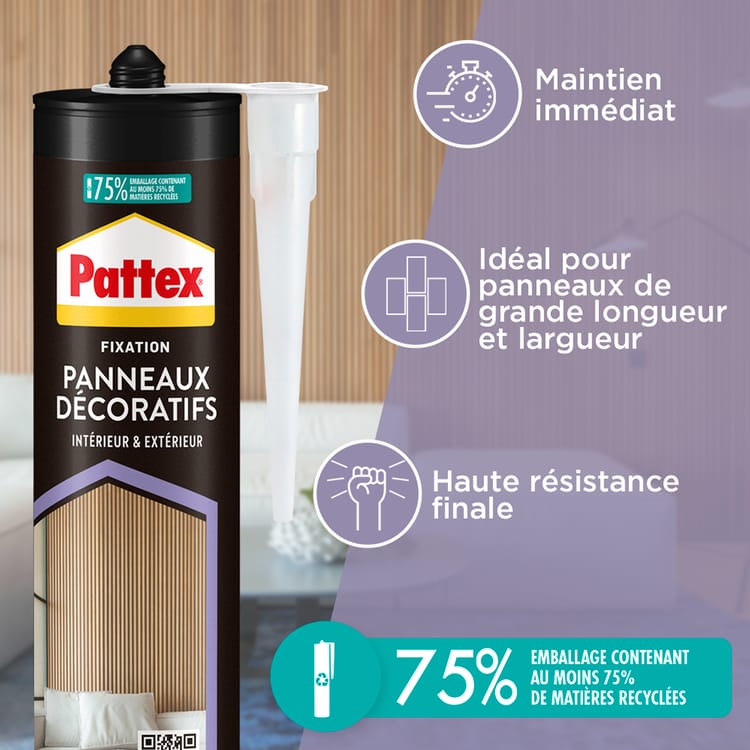 La colle de fixation Pattex Panneaux Décoratifs est spécialement conçue pour une installation simple, rapide et durable de vos panneaux MURA.